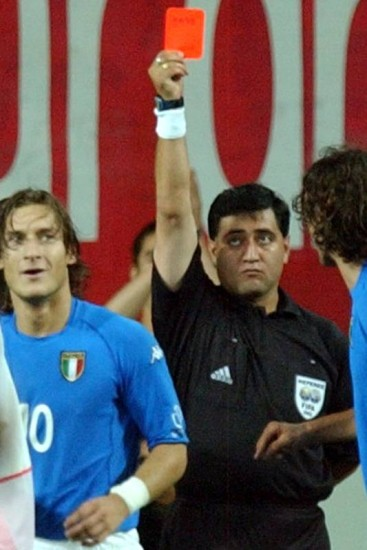 Pouco antes, Francesco Totti havia sido expulso após cair dentro da área. O árbitro interpretou o lance como simulação e aplicou o segundo cartão amarelo, deixando a Itália com um jogador a menos em um momento decisivo.